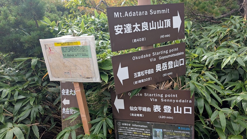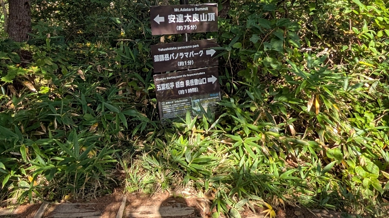 往き 70分 山頂駅 9時1分 薬師岳分岐 9時3分 仙女平分岐 安達太良山 10時11分