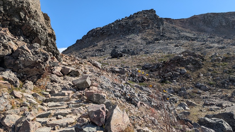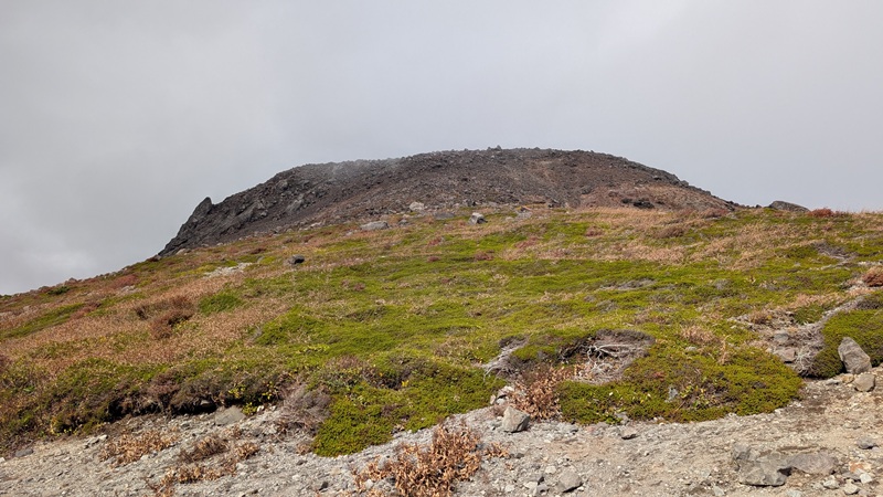 茶臼岳の山頂へ 溶岩ドームの核心部に近づく