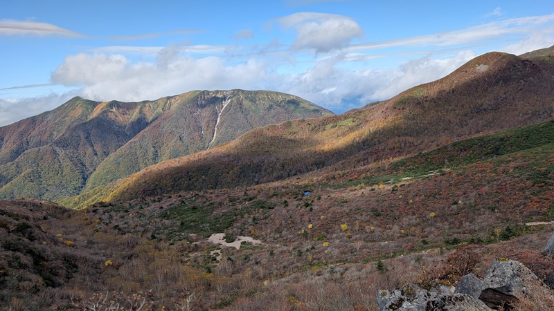 那須岳ロープウェイの山頂駅から50分で山頂へ到達できる。ロープウェイは100人乗りでしかも静音。さすが那須だと思う。那須には御用邸がある。今年みた紅葉の中ではトップクラスによい。山頂駅は気温9.5℃。