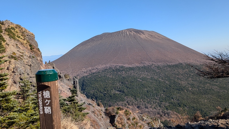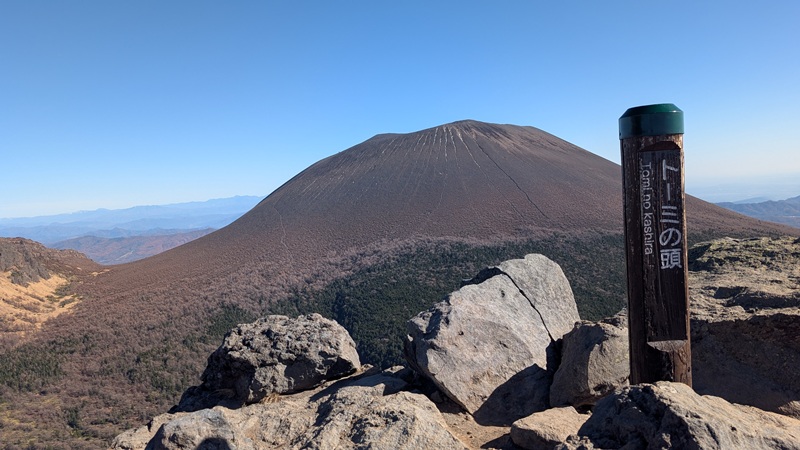 現在は、噴火警戒レベル2(火口周辺規制)で立ち入り禁止のため、山頂は黒斑山(2404m)とされている。
