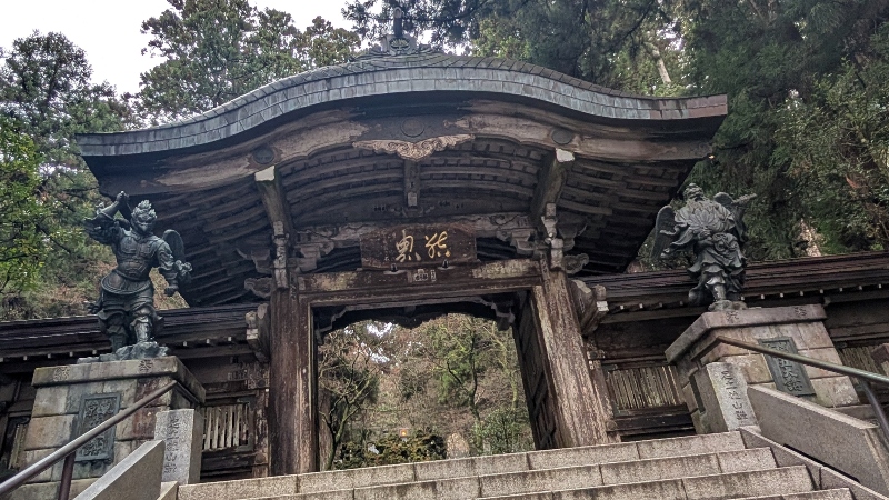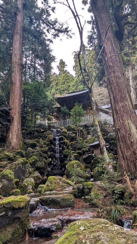 奥之院への石段は400段ほど。杉の大木と深い森。紅葉は終わっていたが、静寂が良い。天狗の伝説はたしかに。高下駄が奉納されている。瀧の風景は浄化される。結界門が厳か。