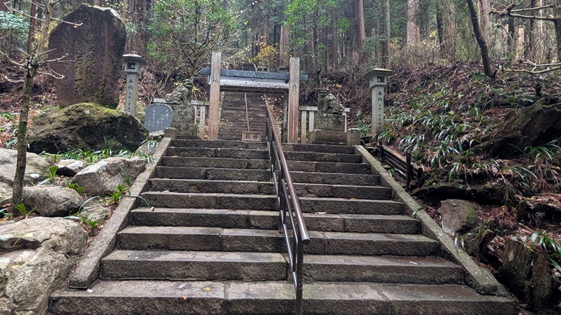 標高400m。気温が3℃くらい低い。奥之院は気温7℃。息が白い。帰りは女坂。杉の落葉を踏みしめながら。