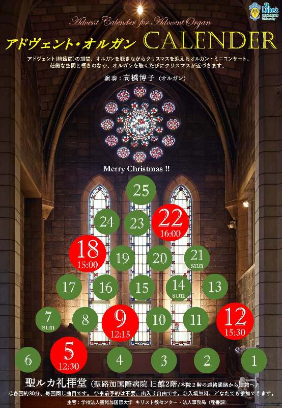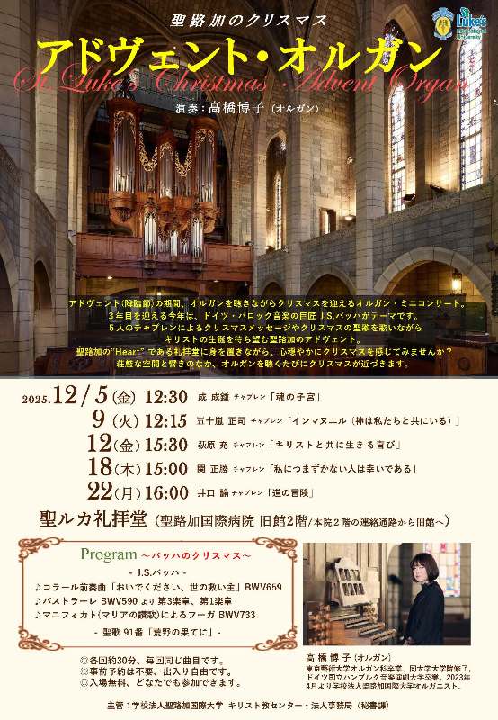 メディア25/12/25聖路加国際病院「聖ルカ礼拝堂」~アドヴェント・オルガン~