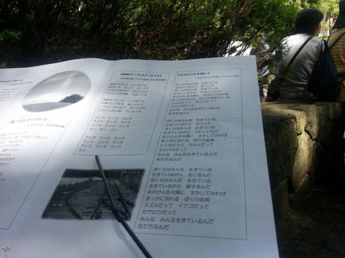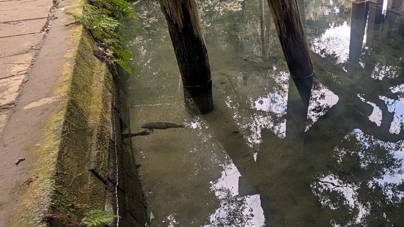また、鯉がいたので観察。すると、大きい鯉が湧き水の水つぼ(見えない)に先に頭を突っ込んで入っていく。小さい鯉は入っていかないでいる。
