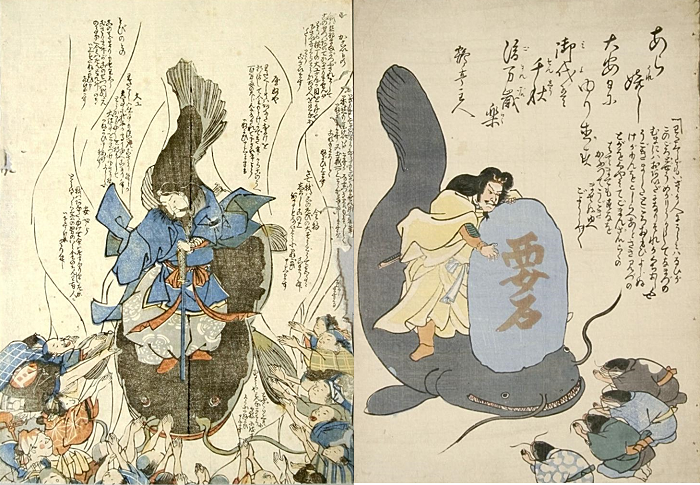 ①要石(かなめいし)は、境内東方に位置する霊石。地上では直径30cm・高さ7cmで、形状は凹型。地震は地中に棲む大鯰(おおなまず)が起こすものと考えられていたため、要石はその大鯰を押さえつける地震からの守り神として信仰された。