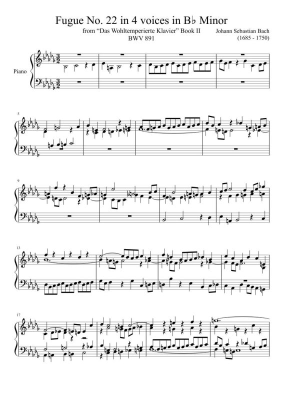 バッハ/平均律クラヴィア曲集第1巻第22番変ロ短調BWV867「前奏曲」
