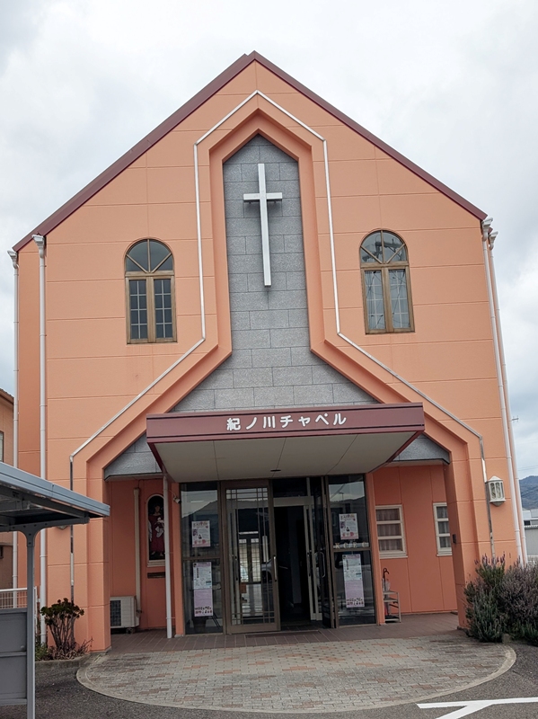 今回で2回目となります。紀ノ川キリスト福音教会さん 佐藤牧師に感謝します。聖堂は、オレンジ色で遠くからでもよくわかりやすい。礼拝堂は、白亜で十字架が印象的。光がさすと微妙に変化する。多くの方が訪れている。